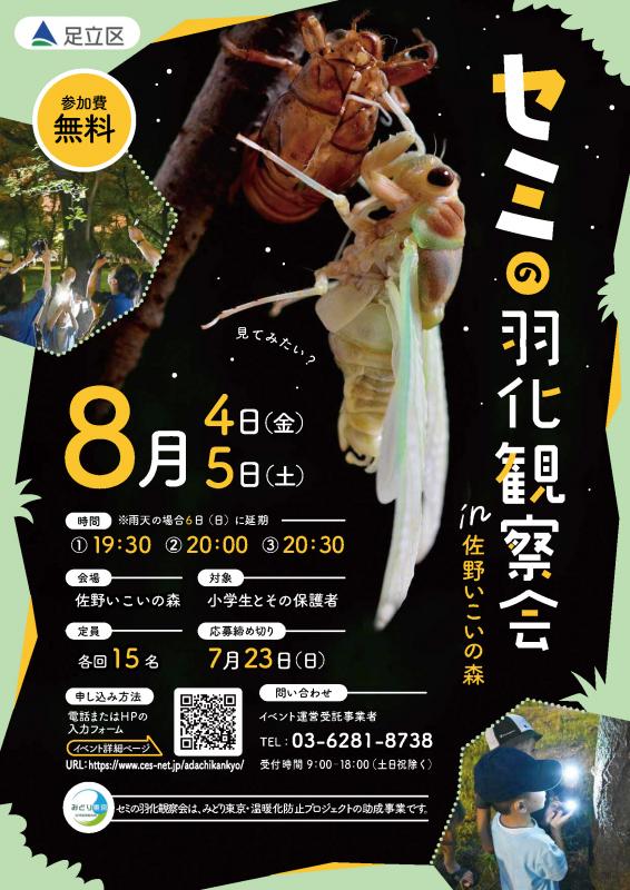 “夜に行われる観察会”の非日常なワクワク感を、月や星々をイメージした黄色を使い、遊び心あるタイトル文字で表しました。そして何よりも羽化直後の美しいセミの写真を大きく配置することで、「自分の目で見てみたい!」という気持ちを刺激するデザインにしました。