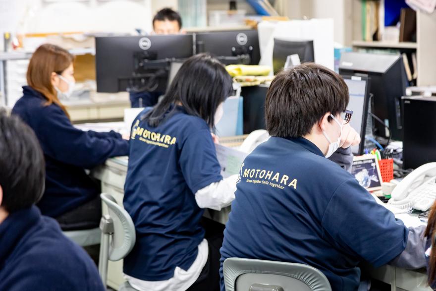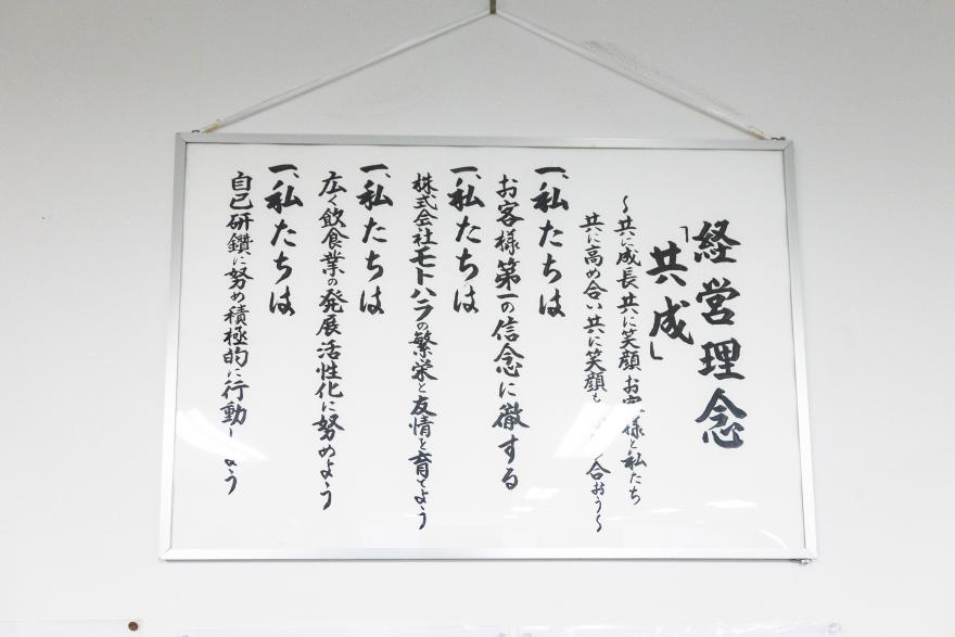 モトハラの理念「共成」 社員みんなが見える場所に大きく掲げられている