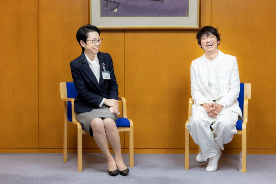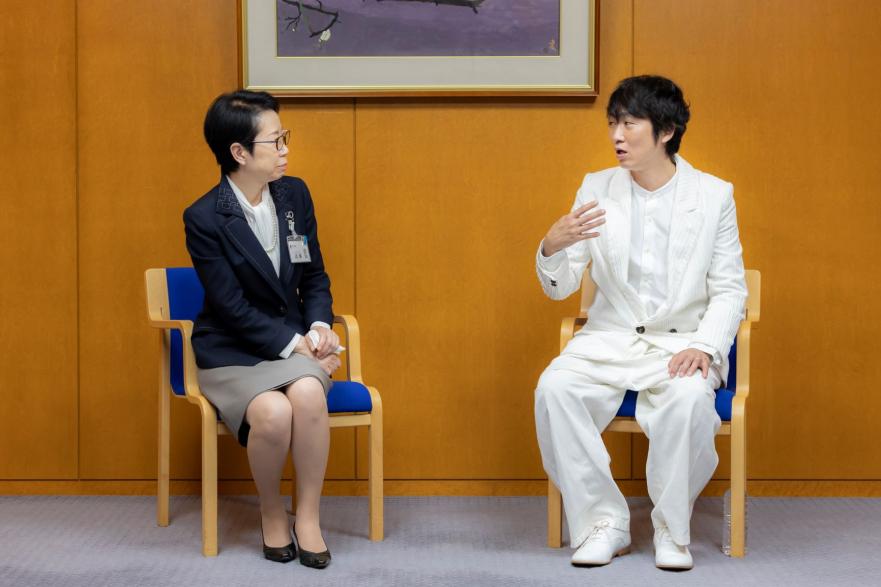 足立区が子育てしやすいワケを、お笑いタレントで3児の父親でもあるNON STYLE石田明さんと足立区長が対談を行いました。