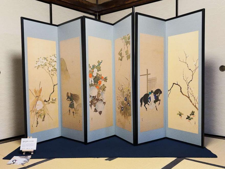 江戸時代の商家「横山家」では、同家に伝わる「群鶴図屏風」(狩野素川嘉信)などが飾られた