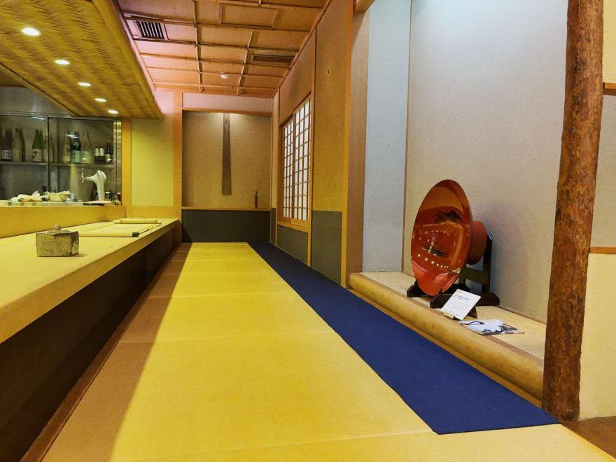 千住まちなか美術館の企画で、「八橋図屏風」(村越向栄)(写真上)、大杯(酒井抱一下絵、原羊遊斎蒔絵)(写真下)などが展示された「味問屋明日香本店」(いずれもレプリカ)