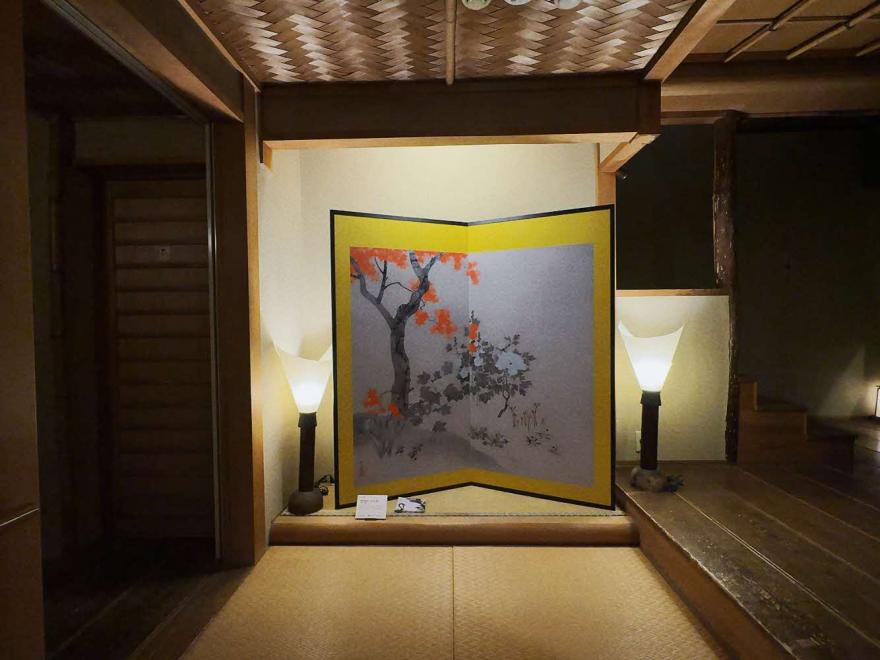 同企画で「四季草花人物図屏風」(村越向栄)が展示された「仲町の家」(レプリカ)