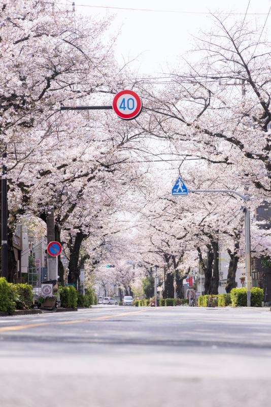 北千住駅東口から徒歩約5分の千住大踏切から荒川土手までの約800mには、約90本の桜が咲き誇る