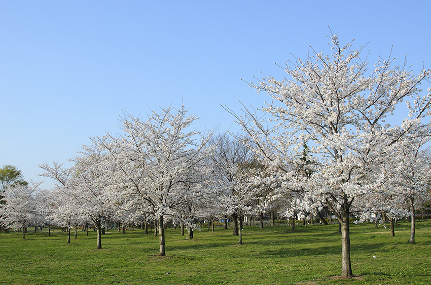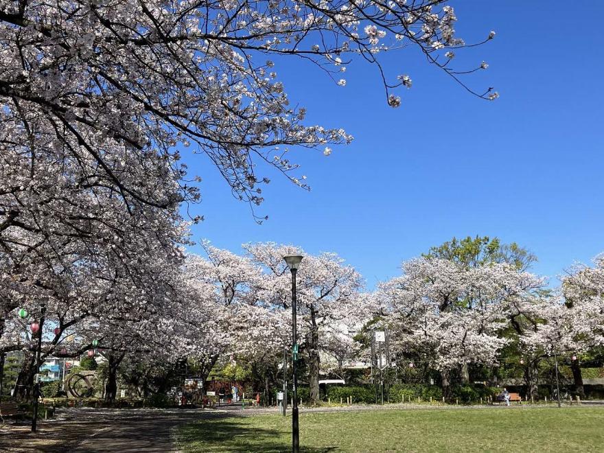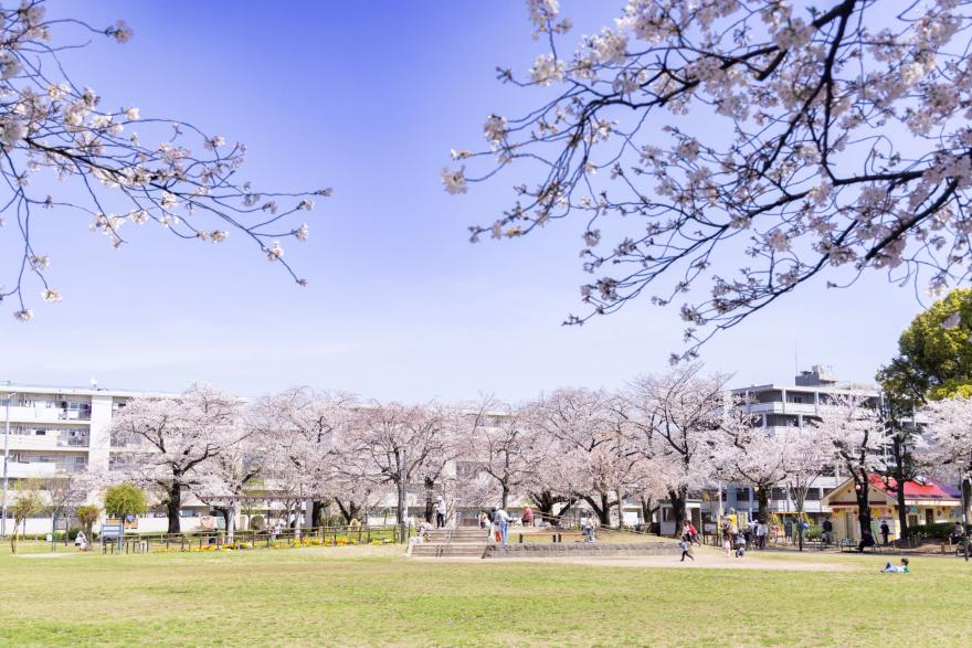 約70本の桜が公園の広場に植えられている。春にはお花見をしにくる地域の人たちでにぎわっており、遊具もあるためお子さんもたっぷり遊べて大満足の公園