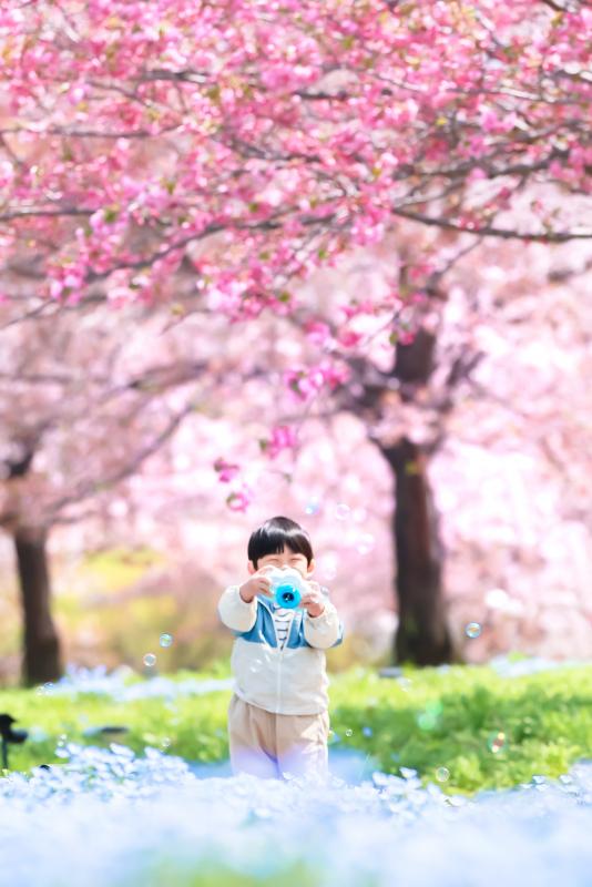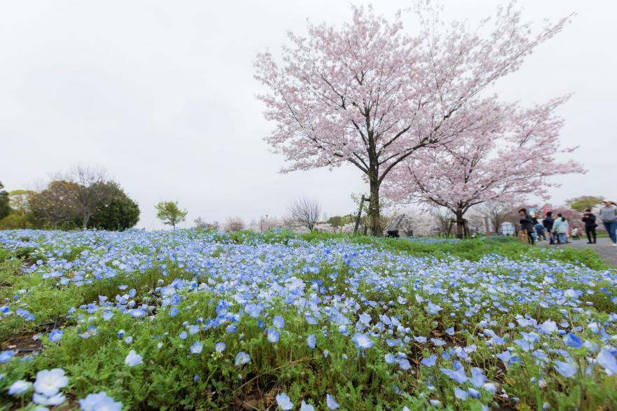 広大な敷地に約1,000本の桜が植えられており、近年では、ネモフィラと桜のコラボレーションも話題の人気スポット