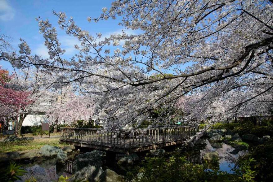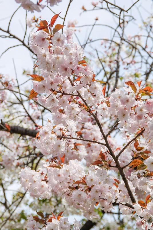 園内には早咲きの桜から遅咲きの桜まで約50種類250本余の桜が植えられており、3月中旬から4月下旬頃まで桜を楽しむことができる
