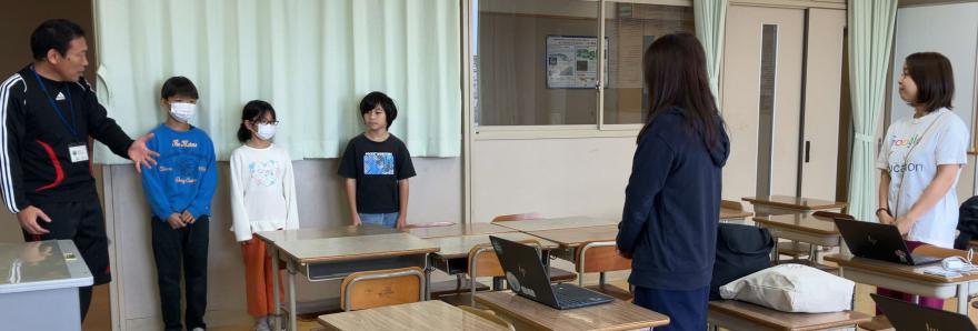 授業開始時には各クラス代表の子どもたちが講師の先生をお出迎えしていました。