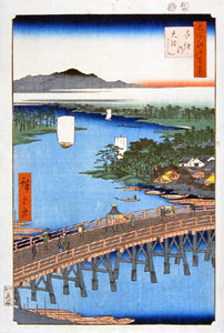 1593年(文禄3年)に、家康は部下の伊奈忠次(いなただつぐ)に命じて隅田川にさいしょの橋として千住大橋をかけました。大橋ができると多くの人たちが千住を通るようになりました。
