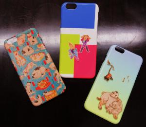 【左から「東海道五十三疋(びき)ねこづくし」「うま、しか」「ぞう、ねこ、さる」のスマホケース】