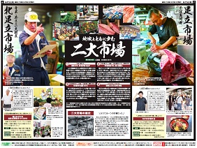 - 二大市場の威勢のいい声が聞こえてきそう。核となるメイン写真を中心に、その魅力を伝える写真がバランスよく配置されている。