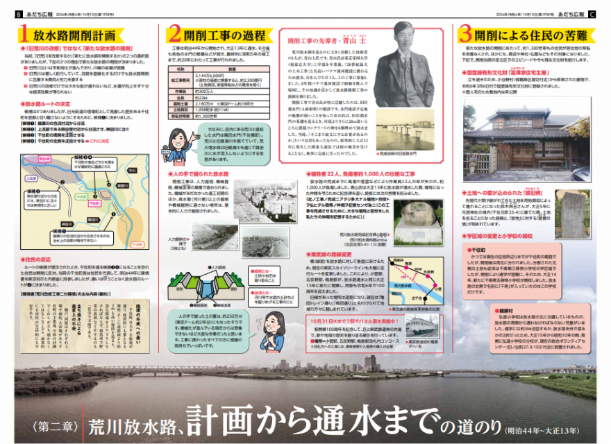 - 詳細な調査に基づいた丁寧かつわかりやすい編集が印象的です。荒川放水路が何を目的として造られたのかを初めて知った読者も少なくないでしょう。また、インタビュー記事ではこれからの放水路と地域とのかかわりについても言及されています。年々、洪水のリスクが高まってきている中で、この記事をきっかけとしてあらためて荒川放水路への関心、災害対策への問題意識をもった読者は多いと思います。