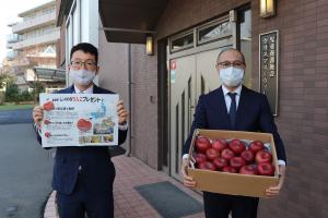 足立区でのイベントを通じて、交流を深めてきましたが、今年は、新型コロナウイルス感染症の影響で、直接的な交流の機会をもつことのできない状況が続いています。友好自治体提携記念植樹から収穫したりんごを寄贈させていただき、りんごを通じて、「友好都市 山ノ内町」を感じていただきたい。