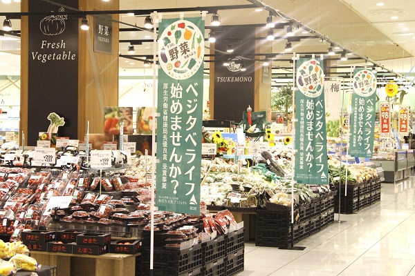 足立区では、スーパーやコンビニ、飲食店など900以上の協力店と一緒に、地域ぐるみで、野菜摂取の促進を通じた糖尿病対策を実施しています。