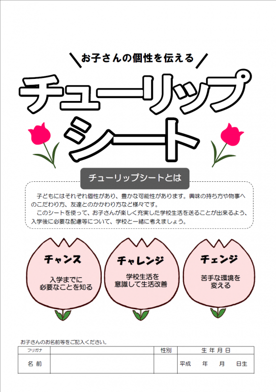 ホーム > 子育て・教育 > 教育についての取り組み > 未就学児 > お子さんの個性を伝える「チューリップシート」