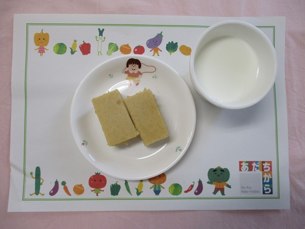 【間食】牛乳・黒砂糖わらび餅・せんべい