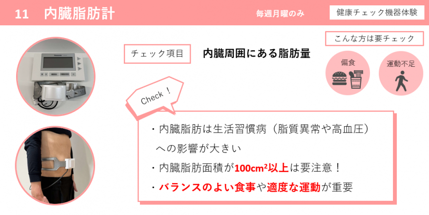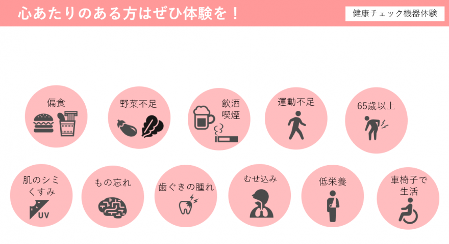 事前に禁忌疾患を確認した方はお受けいただけない健康測定器があります。ご了承ください。