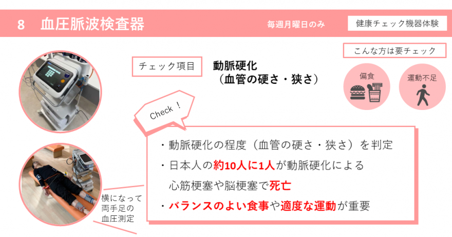 (血管の硬さや血管の詰まり具合を測る)