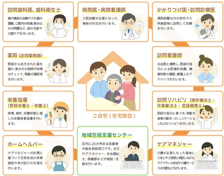 地域のさまざまな医療・介護専門職があなたやご家族の在宅療養を支援します。