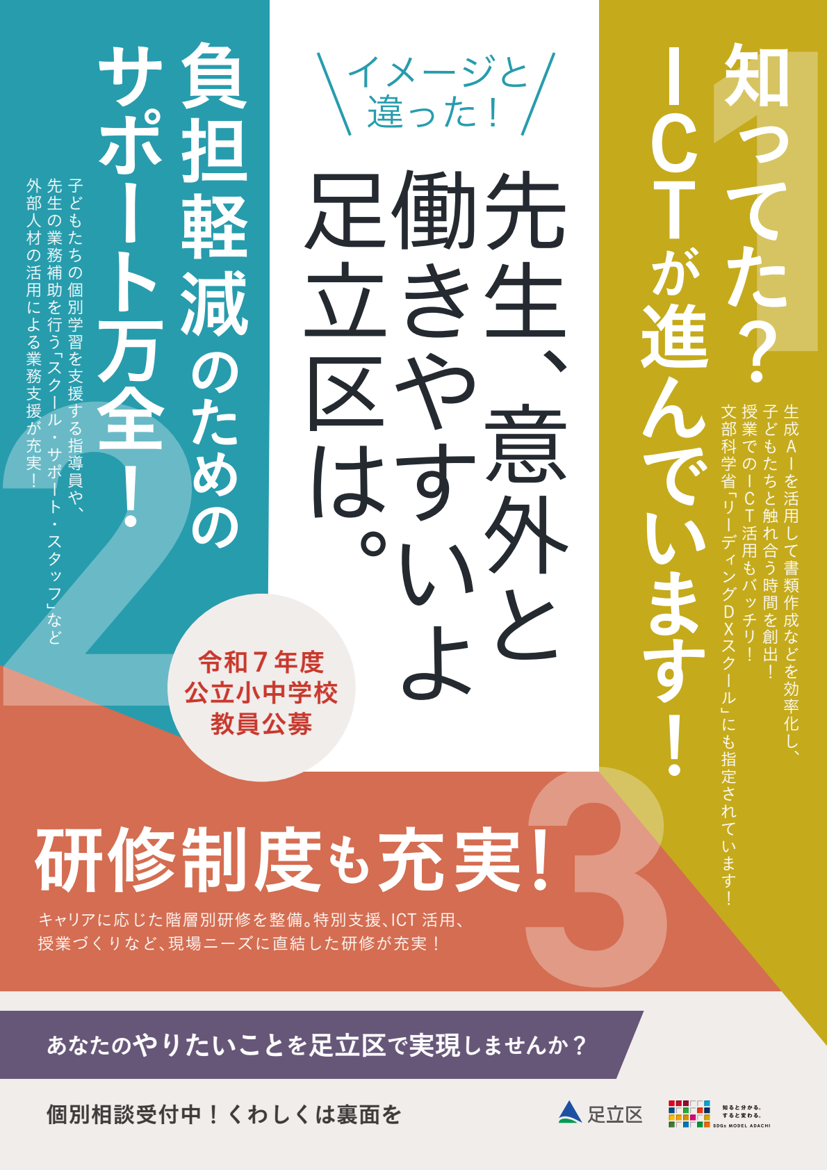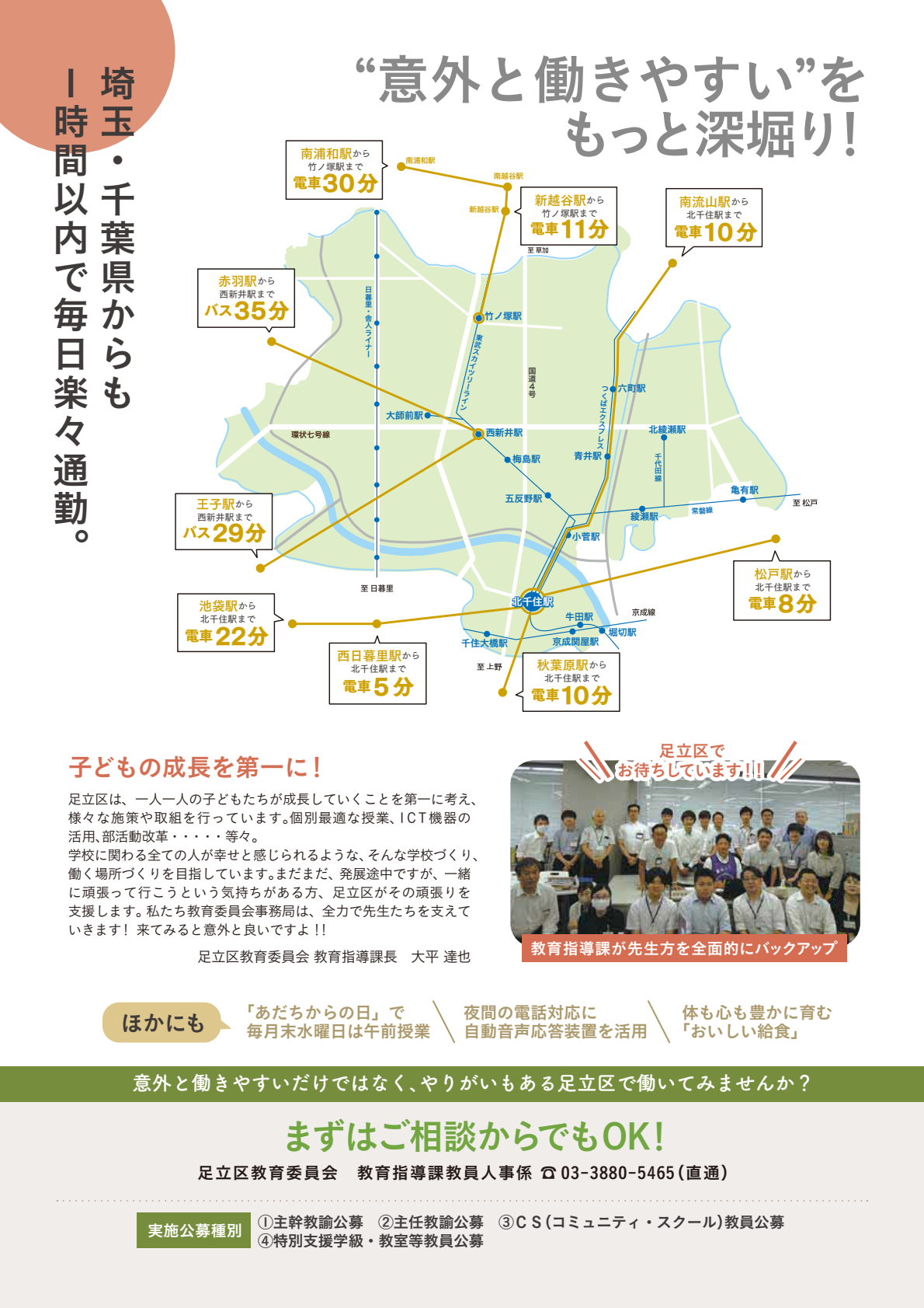 の三拍子がそろい、とても働きやすい区、それが足立区なんです!
