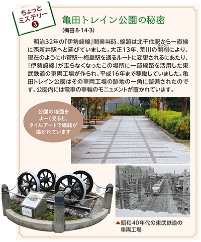 本特集は、(一財)足立区観光交流協会の制作した動画「あだちミステリーハンターが行く」とのコラボ企画です。東武鉄道の職員と一緒に西新井や千住のミステリーを紹介しています。あわせてご覧ください。 |