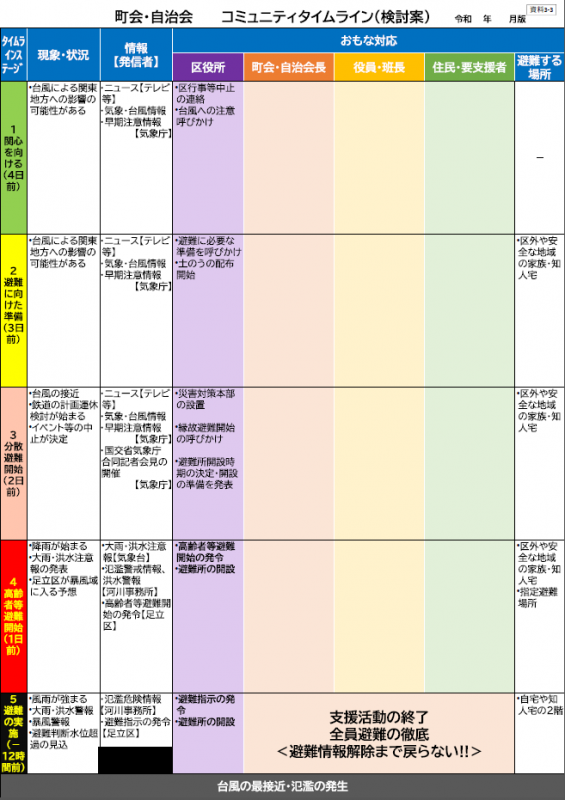 荒川沿川以外の地域については、地域住民が自ら策定できるように、コミュニティタイムライン(CTL)策定の手引きを作成しました。