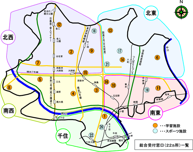 ホーム > 文化・スポーツ > 講座・サークル・生涯学習 > 施設・利用方法 > 区内22箇所総合受付窓口