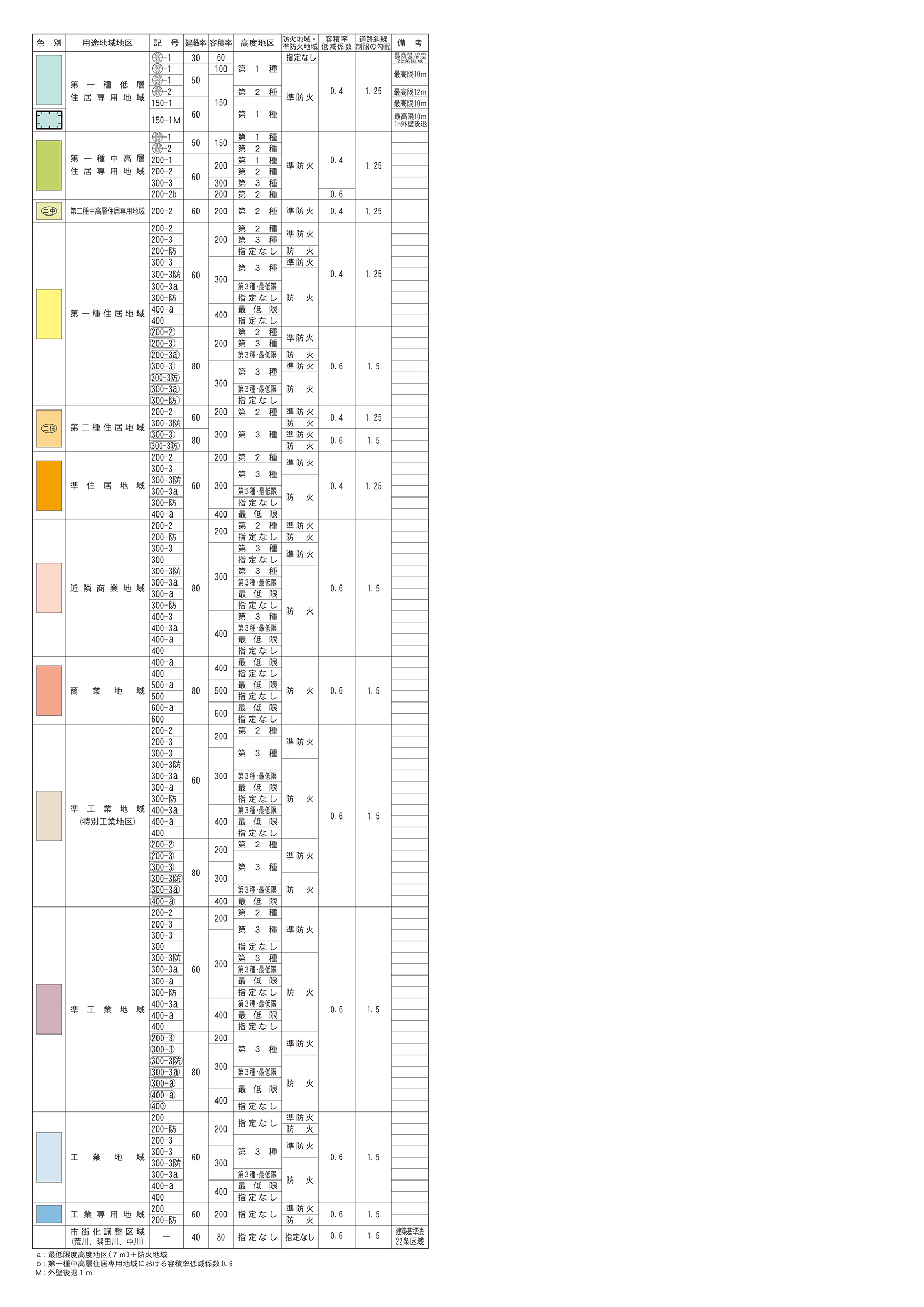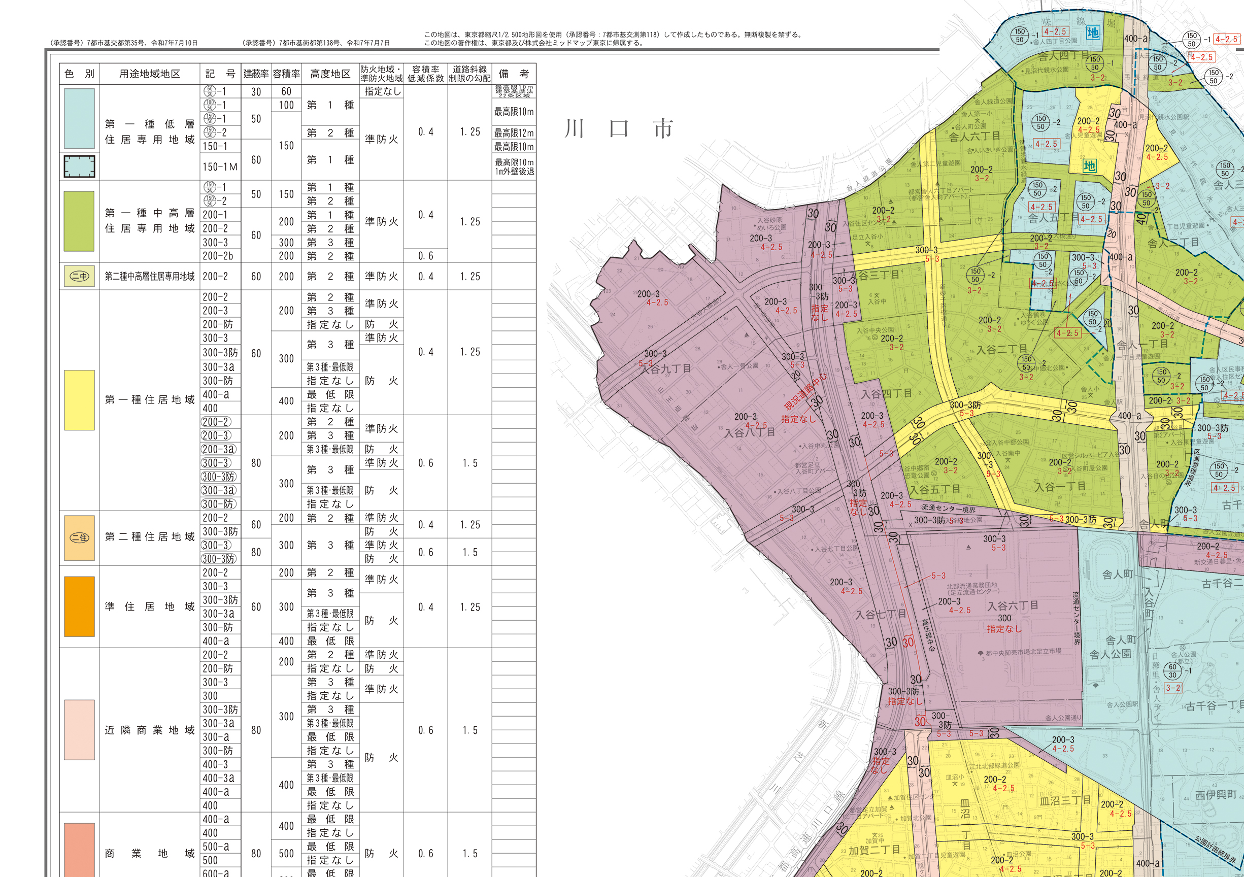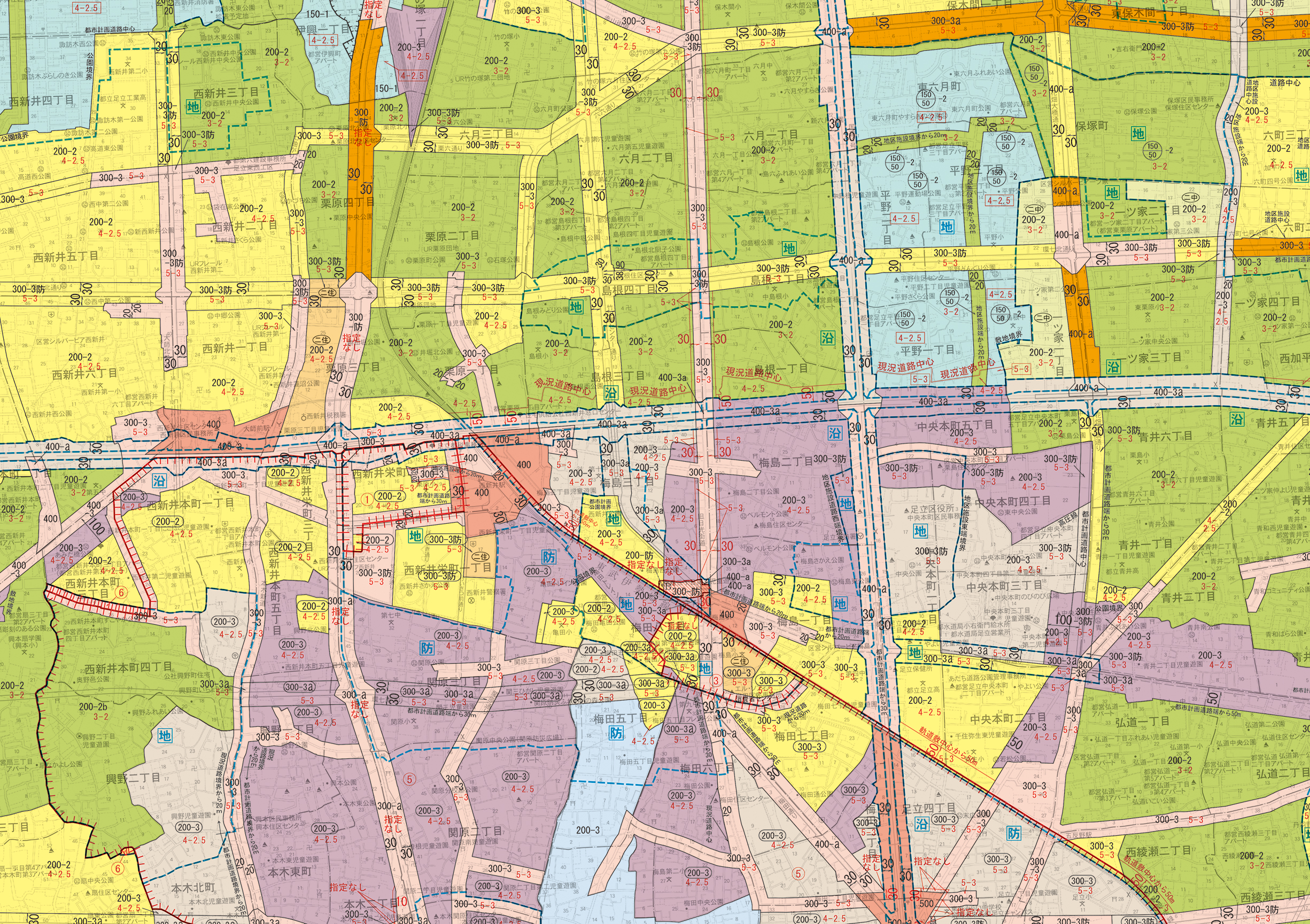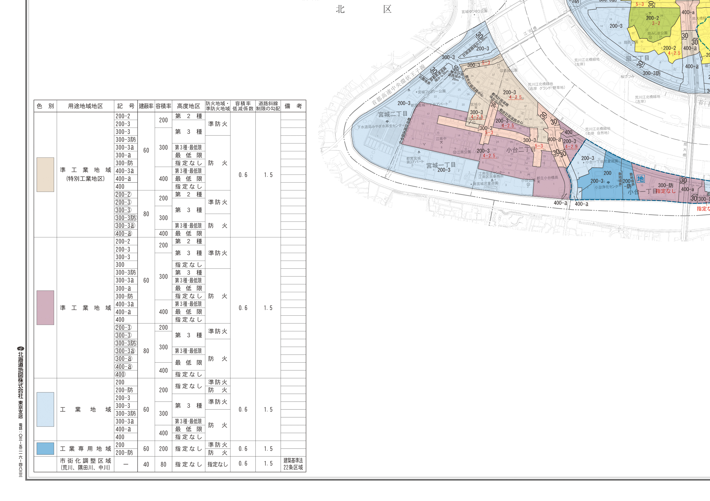 【 用途地域・建蔽率・容積率・高度地区・防火地域及び準防火地域・特別工業地区・日影規制 など 】