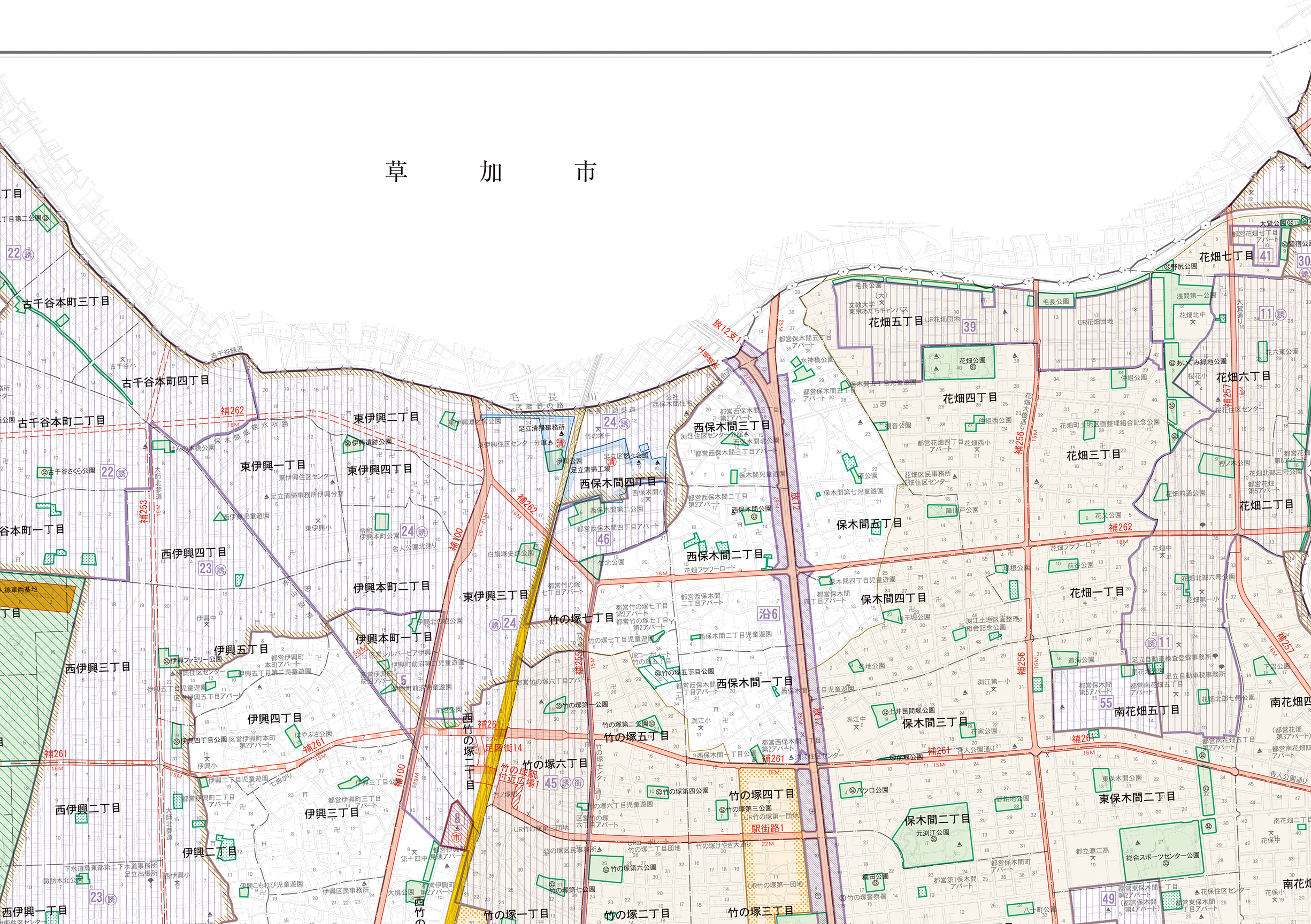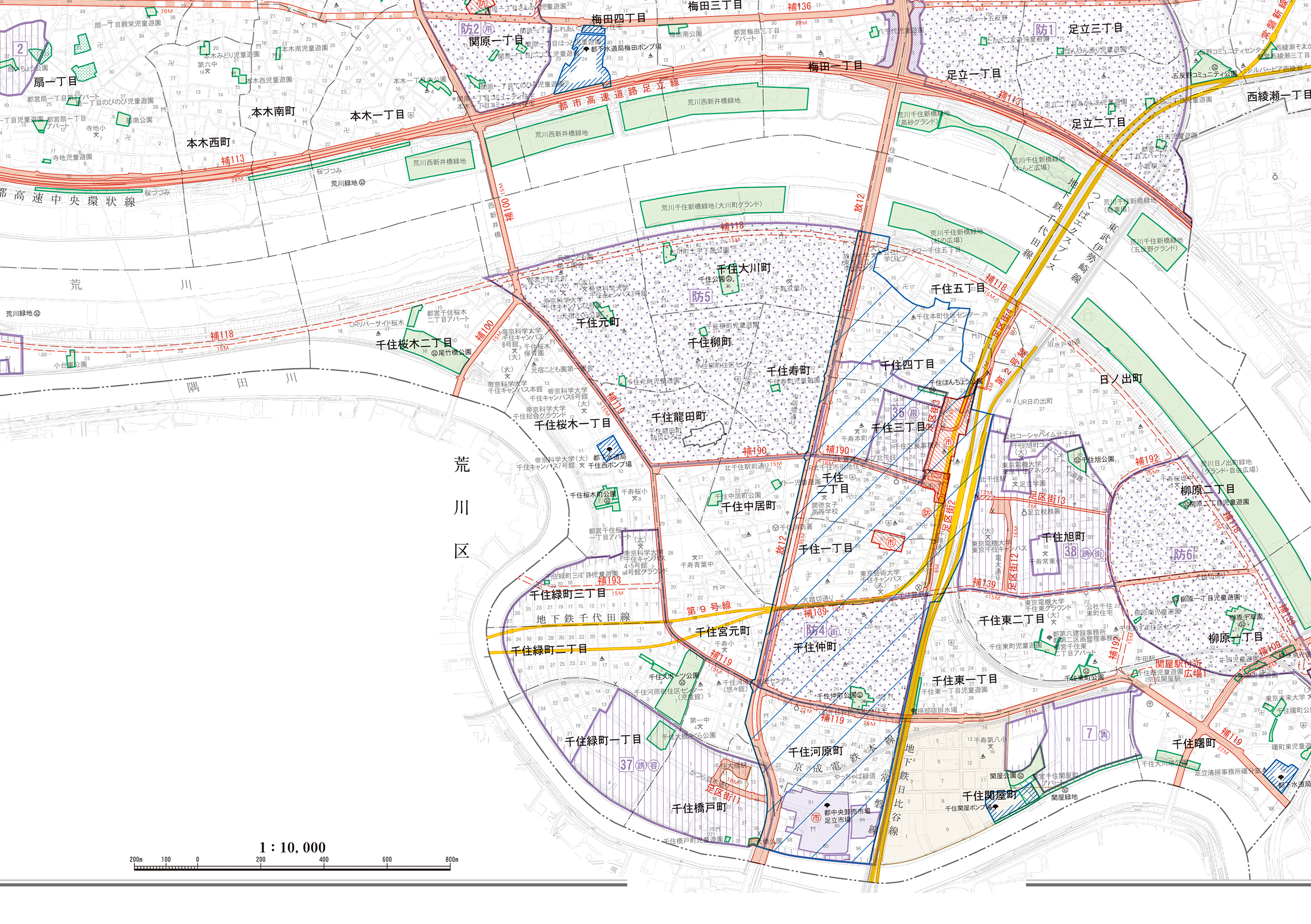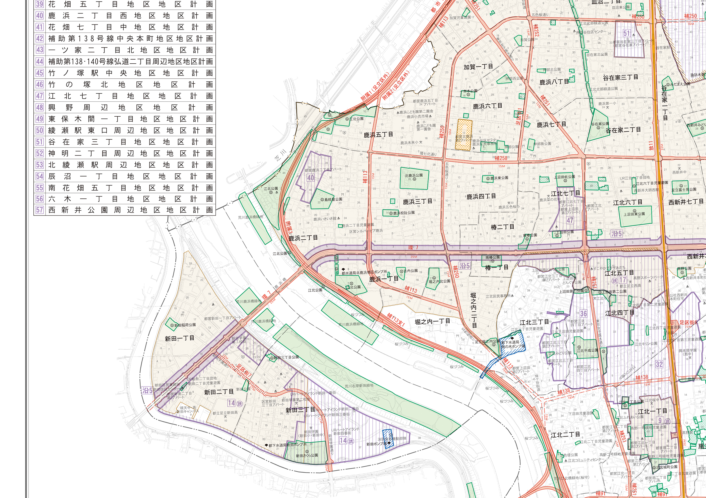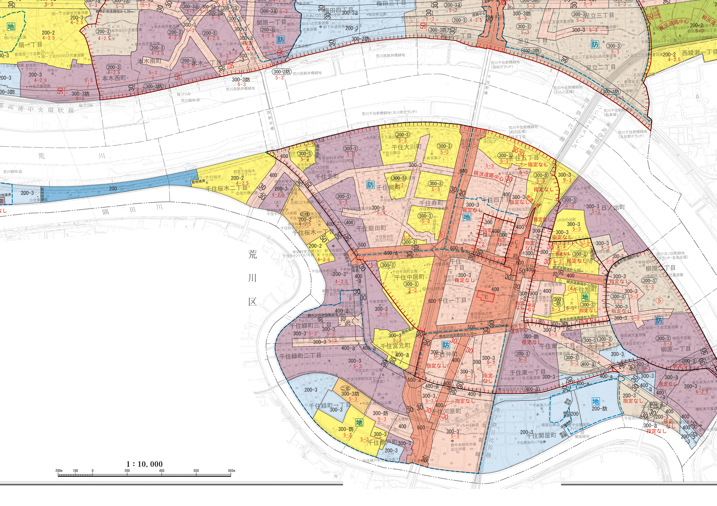 区では、用途地域や都市計画道路など、都市計画に関する情報を提供するため、これらの情報を掲載した都市計画図を作成しています。
