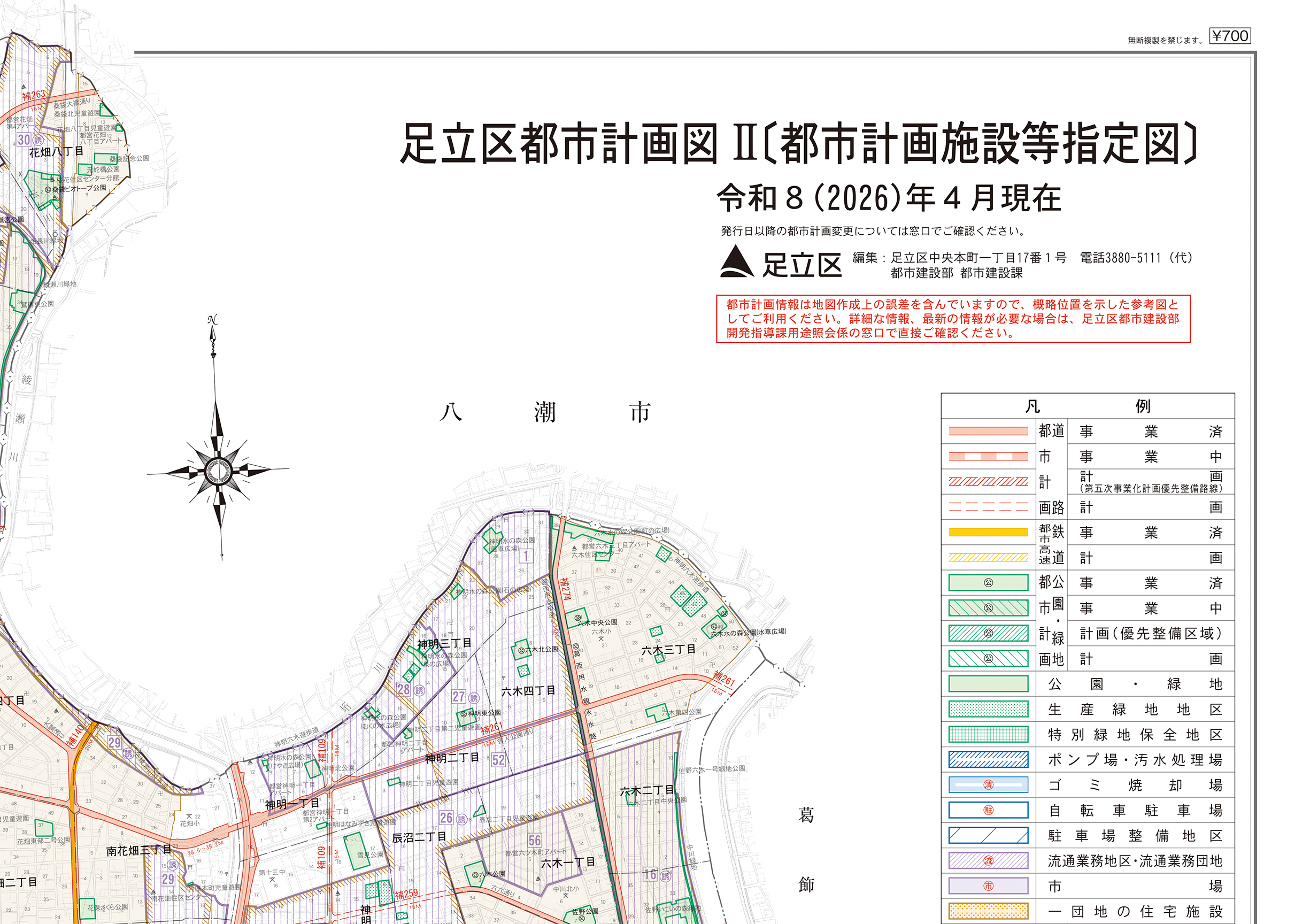 足立区都市計画図は足立区役所の下記の場所で販売しています。