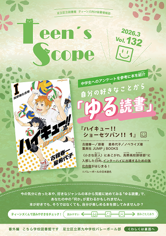 ホーム > 文化・スポーツ > 足立区立図書館トップページ > 図書館からのお知らせ > Teen’s Scope最新号『自分の好きなことから「ゆる読書」』を発行しました。